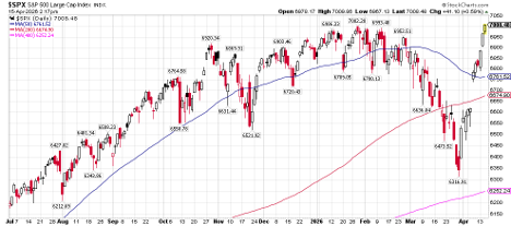 After what has been another difficult first few months of the year for the second year in a row (remember the Liberation Day tariffs around this very same time last year?), the U.S. stock market is once again in bloom.  Following a near -10% decline in the S&P 500 starting in late January through the end of March, the market has bounced a resounding +11% with gains in 10 out of the last 11 trading days, setting fresh new all-time intraday highs in the process.