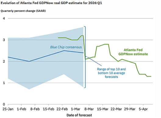 Economic growth outlook?  The U.S. economy appears to be losing some steam with the Atlanta Fed GDPNow for 2026 Q1 drifting down to +1.3%.  But the important point is that the economy is still growing, and early projections for 2026 Q2 are similarly positive for growth if not marginally more so.